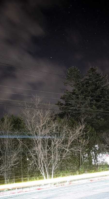 4.26に十勝川温泉で撮影した星空です。曇り空の上に国道沿いの明るいところで撮ったのでよく映っていません。