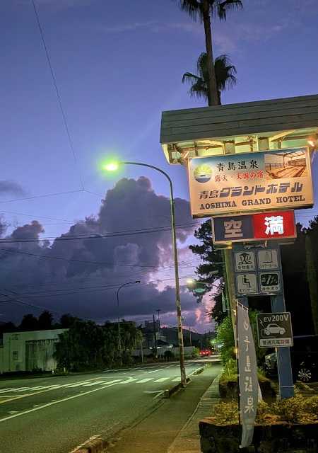 2泊3日の宮崎旅行、天気予報も悪く新燃岳も噴火していたので最終晩は宮崎市内のビジネスホテルで過ごす予定でしたが、天気予報が急回復したので急遽星空の綺麗と言われる青島海岸に直結する青島グランドホテルを予約。