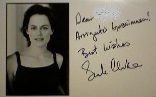 「24」シーズン3のフジTVでのオンエア、始まりましたね~。 (=^ ^=) ♪その記念・・・というわけではありませんが、「24」のニーナ・マイヤーズことサラ・クラークに昨年12月に出したクリスマスカード&ファンレターのご返事に届いたサイン入りフォトです。(届いたのは、春先くらいでした。)1行目のDearの後のファーストネームは消しています。携帯写真で撮ったので、ややセピア色っぽくなってますが、実物は、普通のモノクロ写真です。昨年、「24」で出会って結婚したジョージ・メイソン役のザンダー・バークレーと仲良く来日して、いろいろと日本語をカタコトながら憶えられたみたいで、2行目は、“Arigato Gozaimasu!”と書いてくださってます。 (“Arrigato”・・・になってるかも?! 笑)シーズン3はDVDを買ってから4、5回は観たのに、TVオンエアも観たくなります。最初、何か画面が違うなあ・・・と思ったら、専門用語はよくわからないのですが、DVDだと映画みたいに横長のワイド映像ですが、TVのオンエアでは、両端をカットして、映像がクローズアップされているので、誰かの顔とかがアップで映るシーンだと、やたら大きくって面白いです。(笑)いやいや、シリアスなジャックたちを観て、笑っては失礼ですよね。オンエアを最後まで観たあとにシーズン4のDVD-BOXプレゼント応募のキーワードがあって、番組終了から3時間以内に応募しないといけないのですが、さすがに3時、4時までは観てられないです。ジャックじゃないんだから、不眠不休は一般人には無理です~! (=^ ^=) ゞ