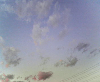 哀愁ただよう空。 昨日でっかいハエを破動拳で殺ってしもた。 ルーズリーフの袋の中にまんまと入ったので 袋の外からためらいなくコブシを振り下ろしたのだ。(僕の残虐な行いにより、彼らとの和解同盟の道は絶たれた。) その骸の画像をうpしようかかなり迷ったのだが 僕の最後の良心のひとかけらがそれを阻止した。 (あ、ハエって血液あるんだね!牙もあったよ!) 学校いったら 出会う友人に 「太ったね!」 と口ぐちに言われた。 心が受けた衝撃が強すぎて 肉体がうまく脳信号を受けてくれず 反応が遅れて動くのを明確に感じた。 しかし来週、補講の帰りにパフェを食べにいく約束をしてしもた・・・・OTL どんどん ふくよかな姿になっていき、 最後は体がはち切れて 塵となってしまうにちがいない。