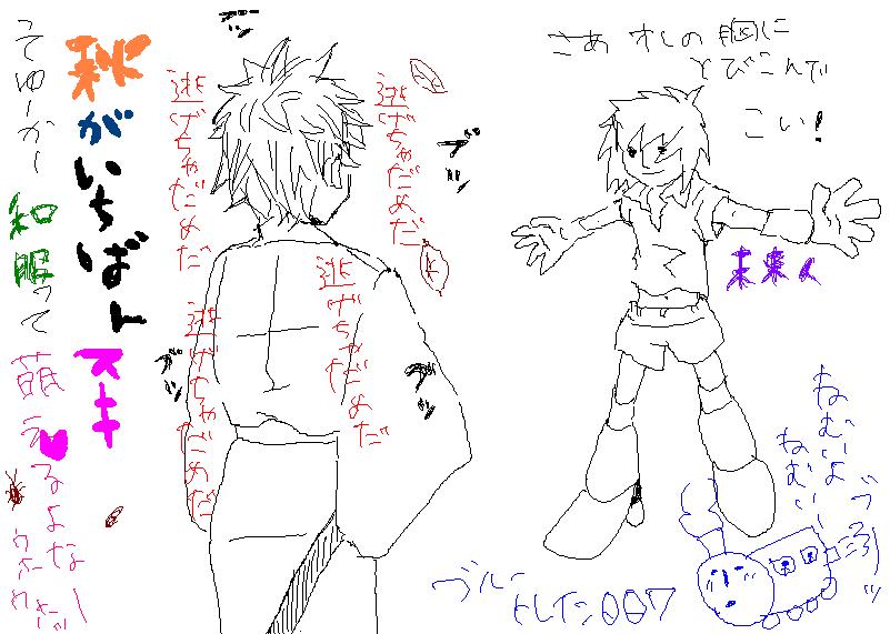 かな~り久々の更新なんだぜ!!!! 卑猥かつ不埒なカキコミの無法地帯で驚いたんだぜ!! 我がブログはそんな仲介サイトじゃねーずら!! ちょっぴりムカついたので暫くの間はコメ及び掲示板書き込みは禁じたよ! 卑猥なサイト書き込みしてた奴らザマミー!(イキナリ強気) ・・・あ、健全なコメを記したかった人がいたらゴメンナサイ。 コードギアス終わっちゃったよー・・・OTL最終回泣いた。 ルルーシュゥゥゥゥ!!!\(゜ロ\)(/ロ゜)/なぜルルが死んで扇が生きてるんだぁぁぁ!!!さすがドSの監督、谷口氏。 こんなに先が読めないアニメは初めてかもしれない。 そうそう!!純情ロマンチカがたしか明日からまた放送なんだぜ あー楽しみだな~。いやホントに楽しみでごんす。 ウサギさんと美咲にまた会えるなんて・・・(キモ 12月に新巻もでるし、オラウハウハだよ!ヒヒヒ 明日はなんとわたくしブルーはSlipknotのライブに逝ってきます。ぶんぶんヘドバンしてきます。壊れてきます。きっとゾンビ化します。 けど、ロマンチカ見るために這いずってでも帰宅します。(ヲタクをナメたら怖いんだZE★)美咲カワユスwww世の中みんなおホモだちになっちゃえばいいのに・・・(腐