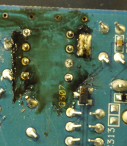 前は一つで終わったけど今日はできれば完成までやってみました。最初のやつが人柱になってくれたおかげで2個目3個目と慣れてくるとだいぶ楽になりました。いくつか、追い半田の時間が長くて半田が基盤表面に着いちゃったのはスッポンできなくて大変だった。という事で全て取ったらこんなになった!説明するほどもなく、黒くなってるところが取ったところw周りのIC?チップ類は熱に弱いようなので気をつけながら作業どれくらいでダメなのかわからないけど。手探りで6秒ぐらい暖めて追い半田+スッポンの繰り返しでがんばった。スルーホールを綺麗にするのには吸い取り線が大活躍というかこれないとたぶん俺にはできないよ。こんな作業で2時間ぐらい使った気がするけど気にしない。ではでは早速足を取り付けていこう!表から取り付けた時の写真表から見ると綺麗!wまぁ裏は見なかったことに。そもそも動くの・・・?百聞は一見にしかずじゃないけどやってみないとね。ここでLT1364の登場載せると~ガンダムみたいでなんかかっこいい?w半田取るのは全然だめだったけど半田乗せるのはかなり速かった。ちゃんと足とスルーホールを暖めてイモ半田にならないように6つすべて付けてあげました。ならそうと思ったんだけど。怖いし、眠いし!忙しいからまた明日!鳴るといいなぁ・・・。
