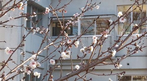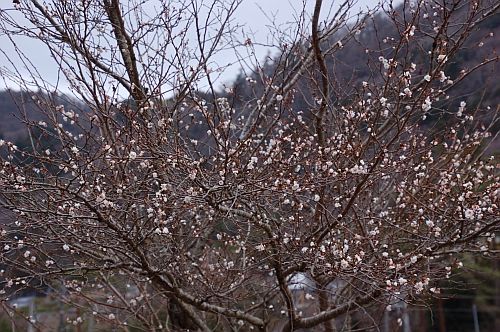 昨日は、offの日。近くの畑に出て、そこのウメ畑見たら、つぼみがいっぱいにふくらんでいて、さらによく見ると、花も開いていました。ウメ一輪・・・。