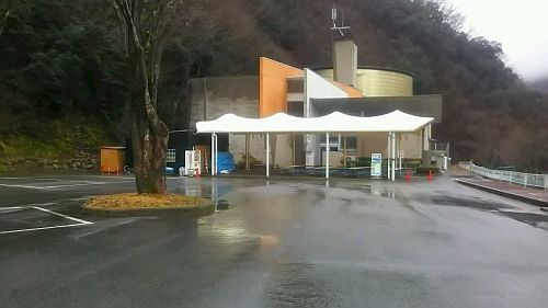 湯之奥金山博物館の隣を、金山遺跡がある毛無山の中腹を源流とする下部川が流れています。午後3時40分過ぎ、辺りはやや暗くなってきて、雨も降り出しました。 川面に、いくつも雨粒があたってできる波紋が見られるようになっていました。やはり、雪になるのかも・・・。 でも、きっと明日はだいじょうぶ。通常にご利用いただける見通しです。(初期投稿:1月27日16時48分 修正投稿:1月27日21時11分)