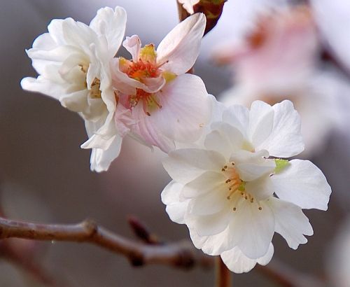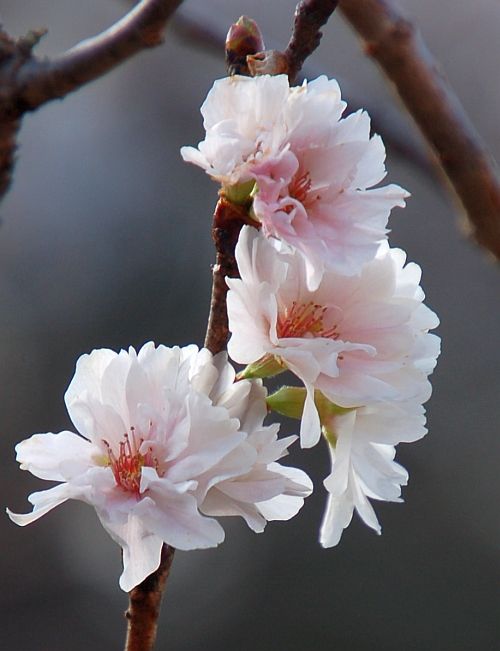 今日は、遅くに雪になるかも知れない、そんな予報も聞かれ、寒い日となりました。でも、ジュウガツザクラは、ご覧のとおり、元気に咲いてます。 こちらは、かなり長く咲き続けてきて、もうそろそろかな、という感じのジュウガツザクラの花たちです。もちろん、この後は、しおれたり、散ってしまったりですが、その周りには、新しいつぼみがいくつも用意されていて、まだまだ咲き続けます。