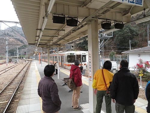 午後0時14分、甲府発富士行きの普通電車が、下部温泉駅に入線してきました。これから乗って、内船までの小旅行。なんとなく、いつもとは違うウキウキ感・・・。子どもの頃、どこかに連れて行ってもらう時の感覚に似ていた。電車はいいなぁ。 こちらは、帰りの電車内。たぁ~くさん歩いたので、みんなちょっとお疲れ。 午後4時5分、下部温泉駅に帰り着き、その先に向かう電車をお見送り。お疲れさま。下部温泉駅から内船駅まで、片道40分ちょっとの乗車でしたが、とてもよい感じでした。 また、いつか こんな感じの企画をしたいと思います。例えば3月の終わりに、塩之沢駅まで。ちょっと近すぎるかな。でも、なぜだと思います。それは、満開の桜。ソメイヨシノの老木がたくさんあって、きっときれい。花見以外にも何かないかな? それから、鰍沢口駅までいって、新旧の富士橋のようすを見学に、というのもあるかな。新しく出来上がりつつある富士橋の建設現場、いまだけの見どころに。さらに現行の3連トラスの富士橋の歴史的な存在を確かめるのも、ある程度期間限定・・・。 そのほかには・・・。何かご希望がありましたら、博物館までお寄せください。。