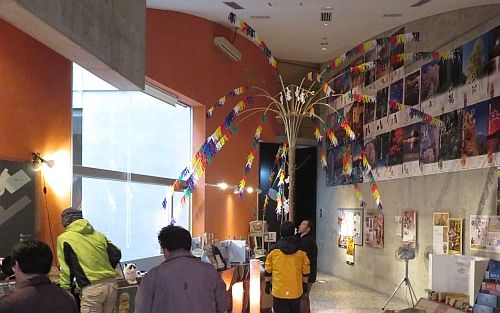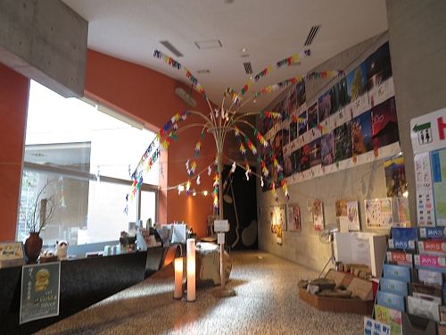 昨日(1月8日)までに、博物館のエントランスホールの受付前に、間もなく到来する、地域色豊かな道祖神祭礼にともなう「お山飾り」が登場しました。 今日のお昼ごろ、人並みがちょっと途絶えた時をねらっての撮影でしたが、ここにさらに団子花が加わりました。そのようすは、おってご案内いたしましょう。
