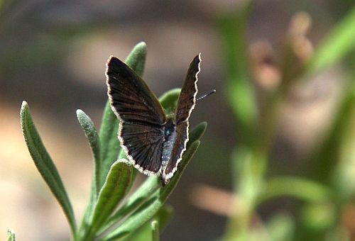 博物館の通用口近くのプランターに植えられているラベンダーの葉の上で日光浴してたヤマトシジミです。ずいぶんと翅表の色が濃いので、別なシジミチョウかと思いましたが、最終的にヤマトシジミでよいと思われました。夏型なのかな・・・。 こちらのヤマトシジミは、博物館の裏手で見たものですが、ツユクサの葉の上にとまり、すぐそのとなりに顔を出していたハキダメギクの花に吸蜜管(口吻)を差し込んでいるところでした。 ハキダメギクにも蜜ってあるのかな、あまりおいしそうではない見た目だけど・・・。 この夏前までには、博物館周辺には、ヤマトシジミはあまり見られないとか思ってたのですが、思ったよりたくさんいましたね。