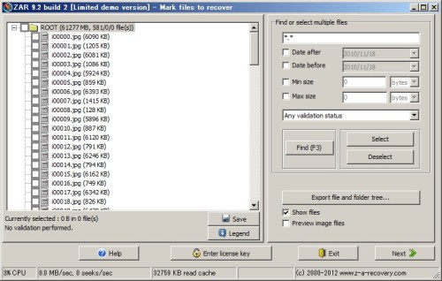 実際にはフリーなdemo版と有償版とがあるようなのですが、写真を読み出すという「Image Recovery」機能はdemo版でも使えるようです。