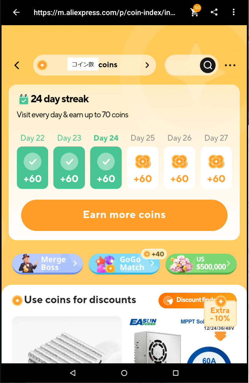 aliexpress は パソコンではなくスマホのアプリからアクセスするとゲームをすることができます。