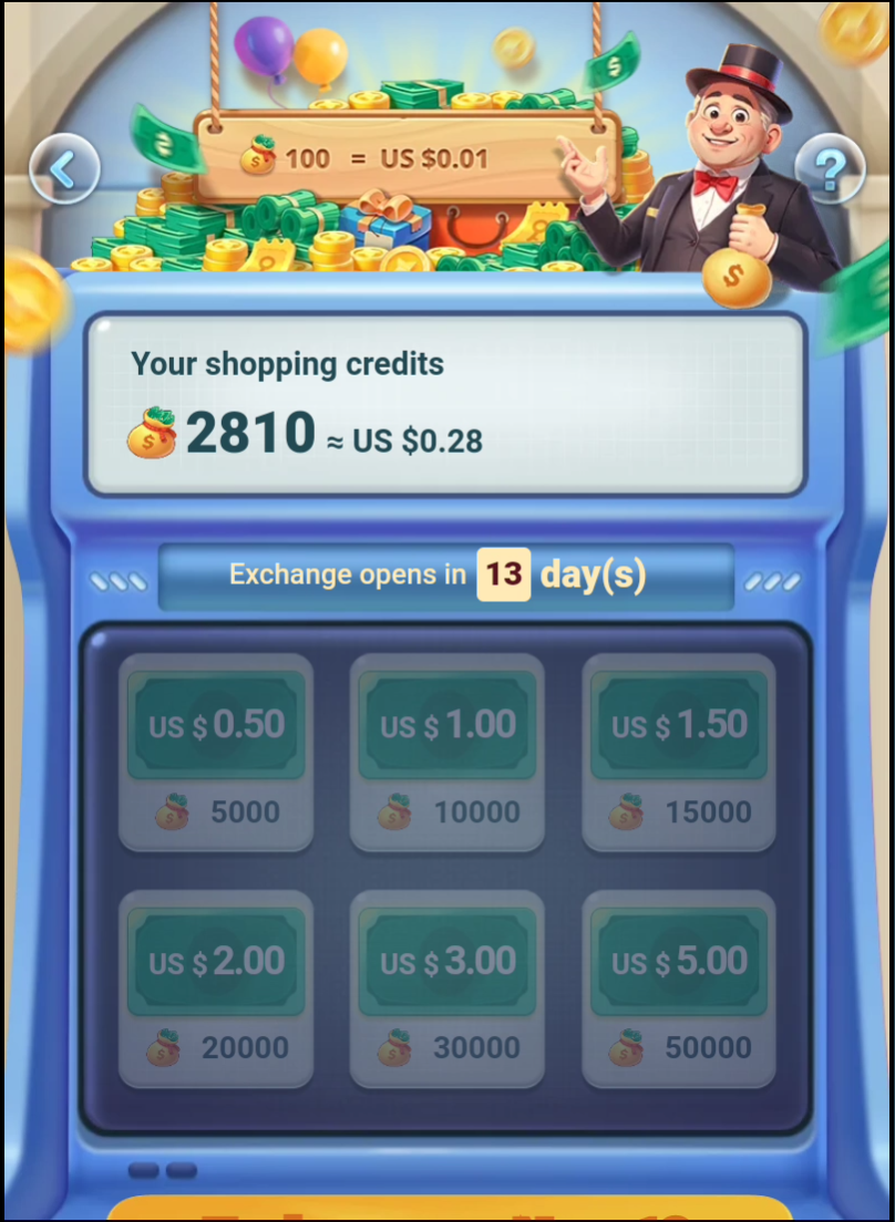 1か月でUS $1と、効率はあまりよくないイベントなので、あまり無理せずに時間つぶしにゲームをするといった感覚のほうがよさそうです。