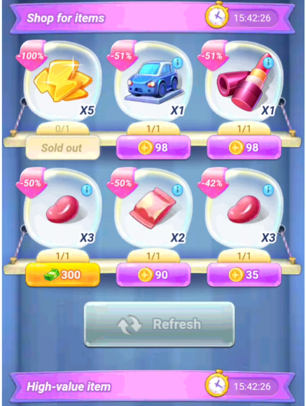 5分たつと50通貨を使って2回目のRefreshが可能になります