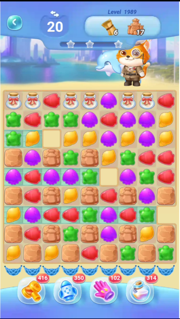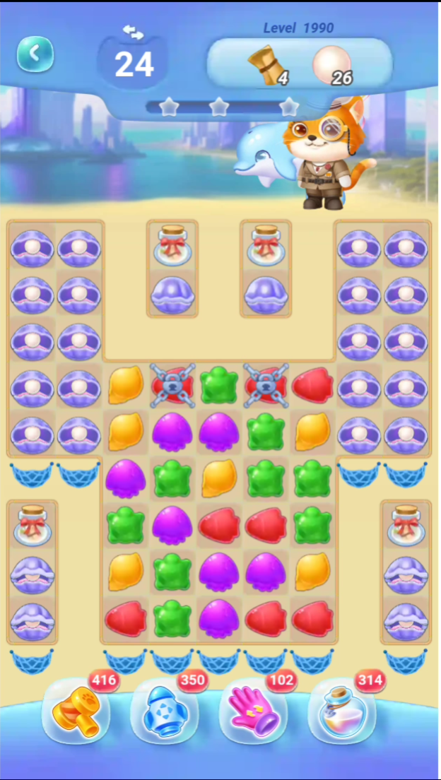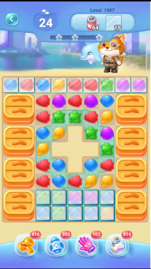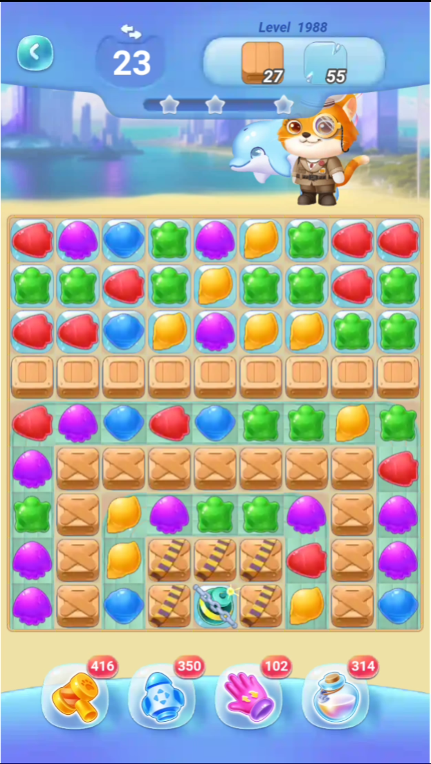 爆弾系でないと壊れない岩が大量にあるので、レインボー+爆弾をうまく使わないと、回数オーバーになって、Coinをたくさん使わせられることになります