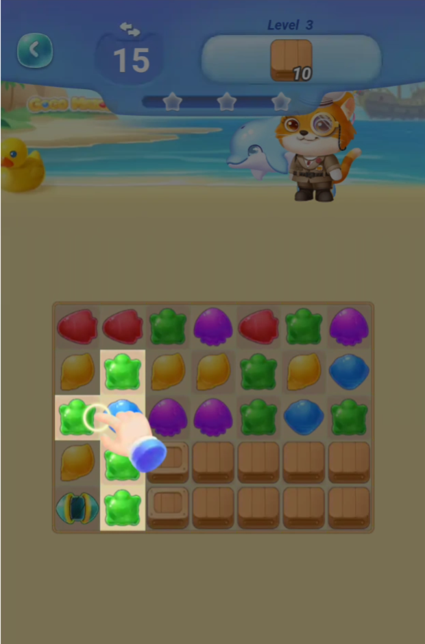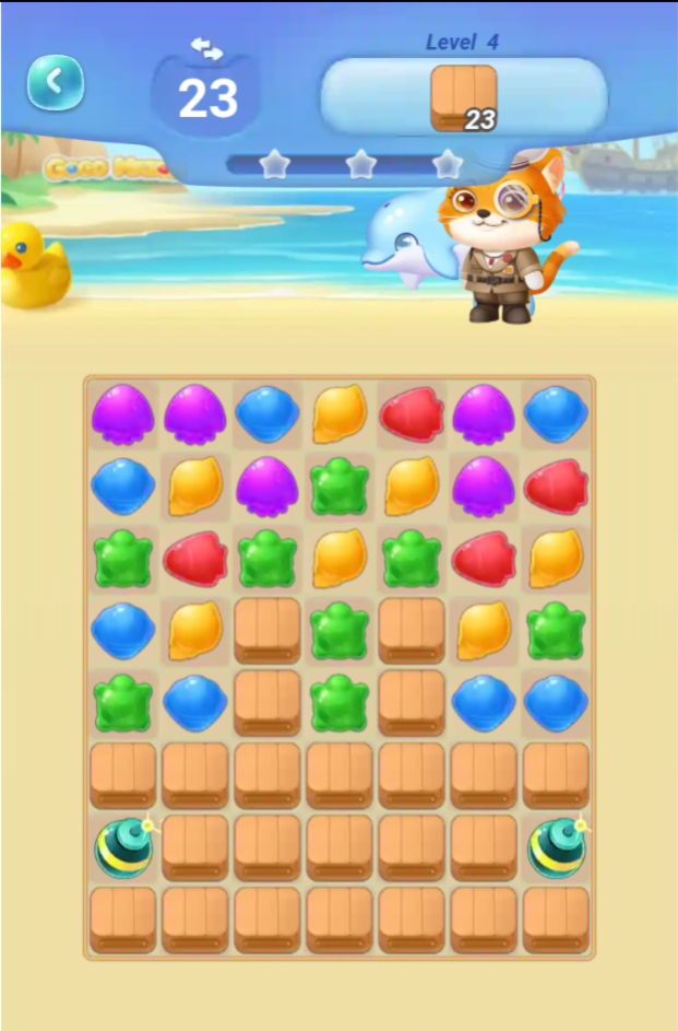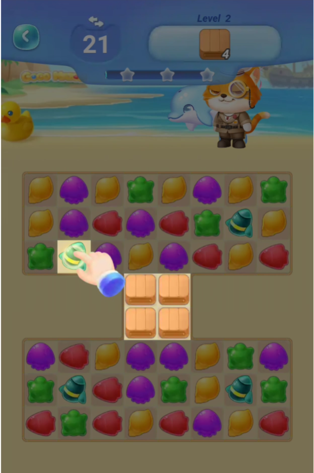 同じ色の物を3個以上縦・横につなげるか、2x2のボックスを作ると消すことができます。