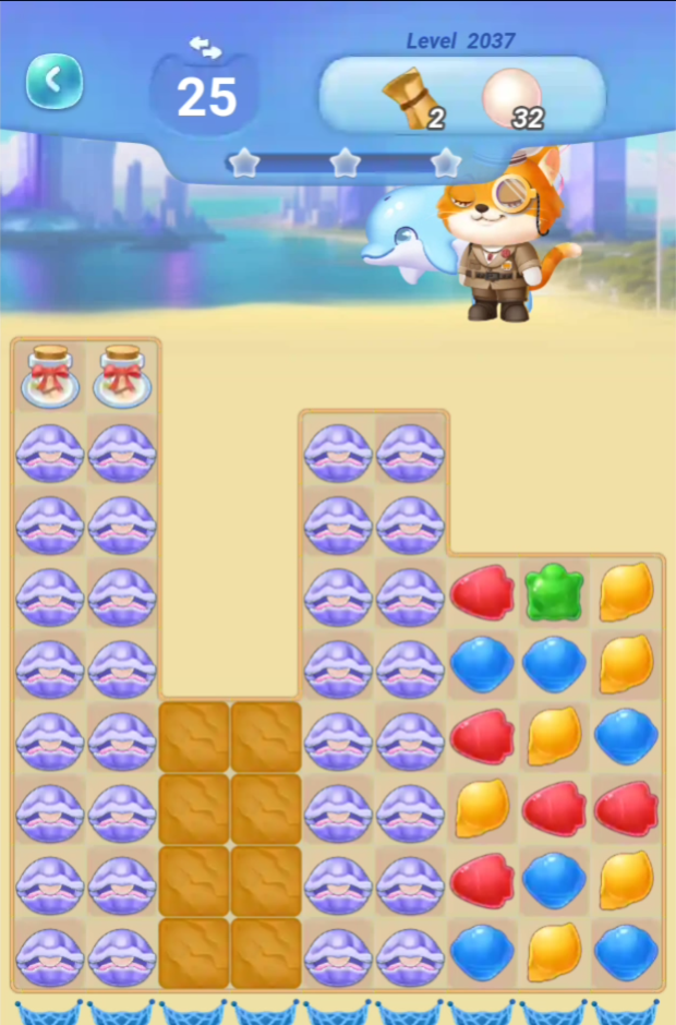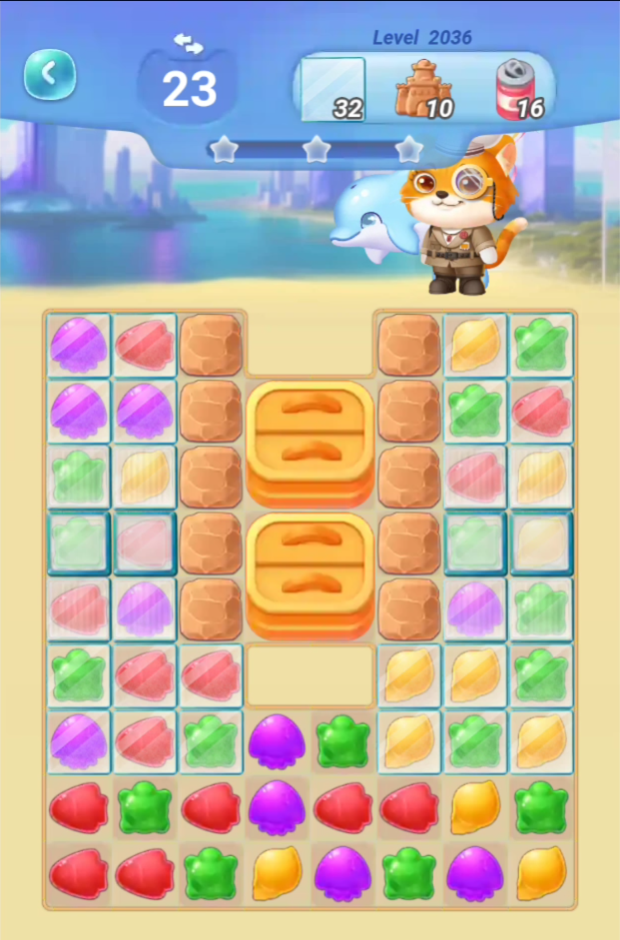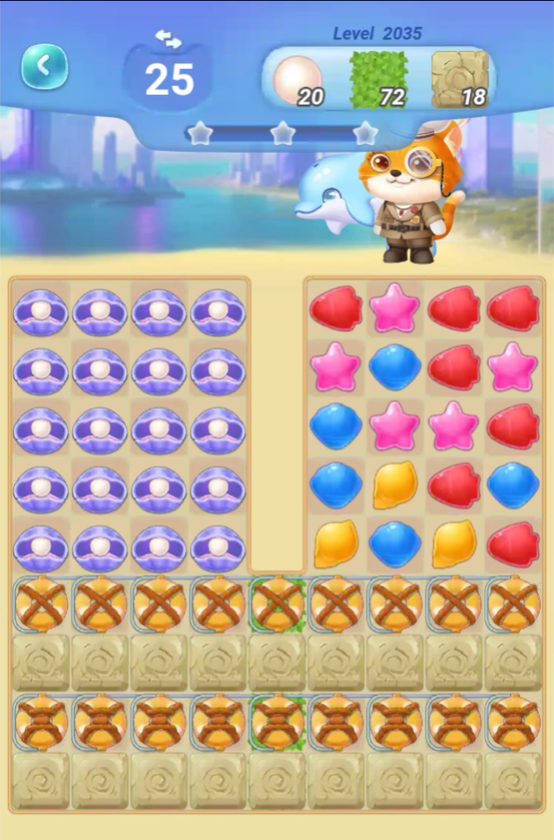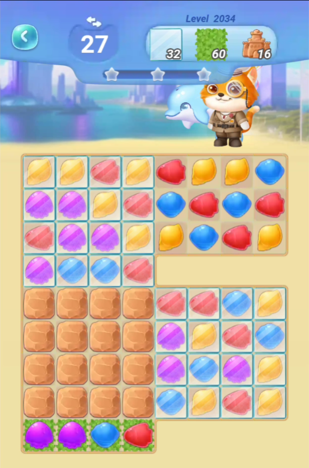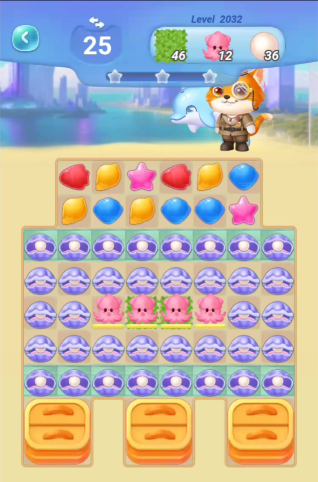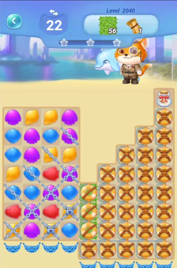 最後に芝生(緑)で埋め尽くさなければいけませんが、芝生はタコの下なので、なんとかはやめにタコを消さないといけません。