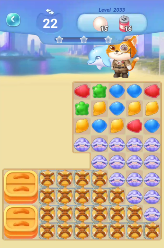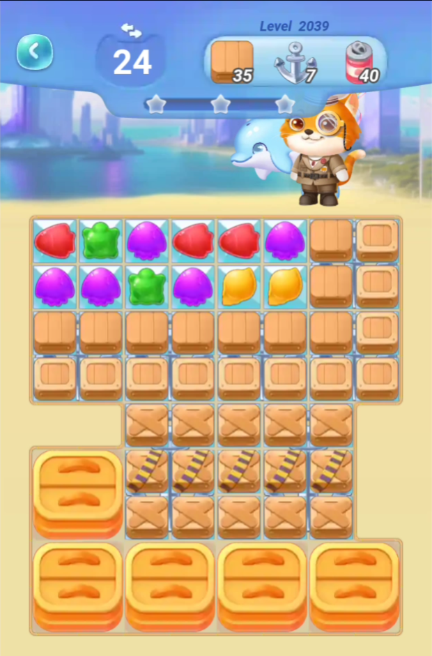 24手で35個の多重の木の箱と、倉庫5個、さらに7個のイカリエリアを消さないといけないので、手数はたりません。ですが、continueを繰り返していけば、そのうちクリアできる面です。