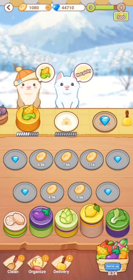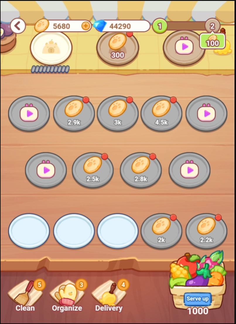 Not PickyとなっているCapyの皿があればすぐに渡します。Fullの皿を渡すと、すぐに持って行ってコインが増えていきます。