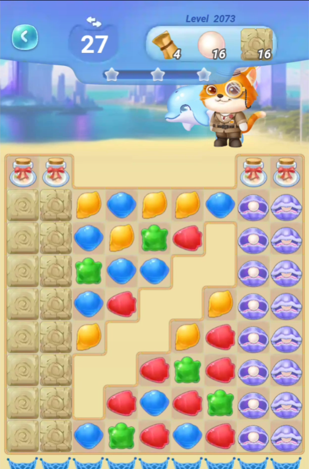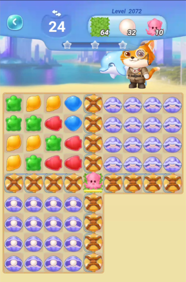 紐と真珠貝。紐のエリアが邪魔をしているので、いかにはやく紐を切るかがカギです