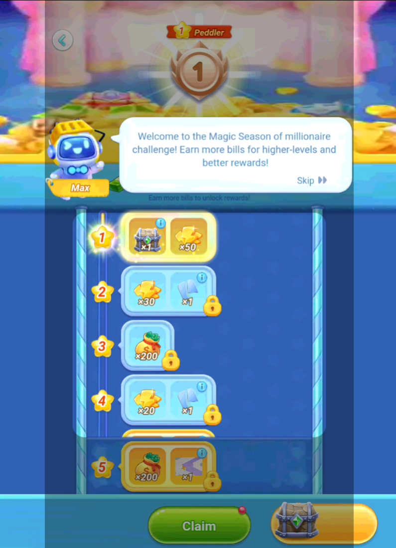 そして、次の画面のように、新しく Magic Season の Millionaire challengeが開始したようです。