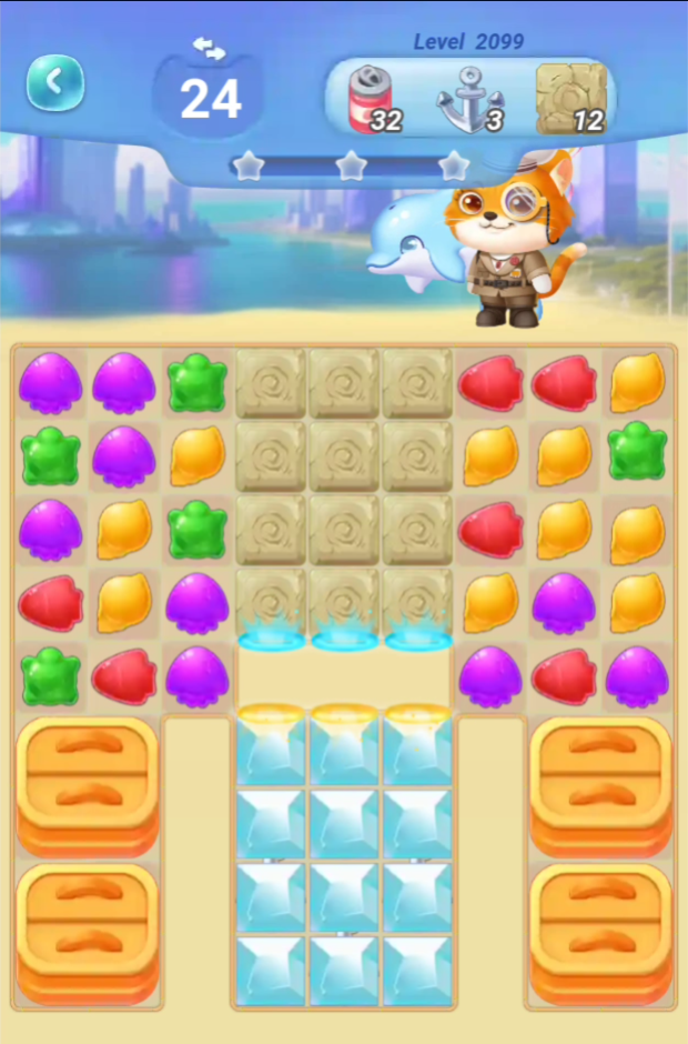 氷につつまれたようなアイテムの消し方がまだよくわかっていないのですが、1回目の挑戦では何度連鎖・ミサイル等で消そうとしても消えないのが残ってしまい、Continue5回で失敗してしまいました。