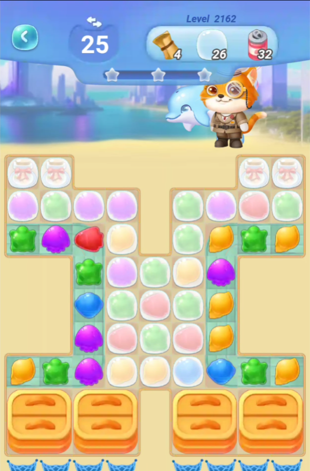 横ミサイル+ロケットだと木の実を横一列に消せて効率が良いのですが、ロケットが残っている雲の位置に飛んで行くとがっかりします