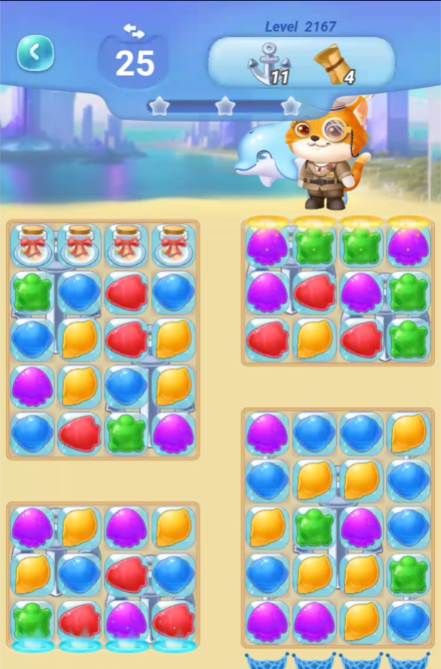一番下の木の実が残るので、横ミサイルをつくったらクリアできました