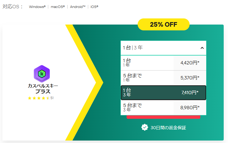 【ポイント10倍/5日まで】 カスペルスキー プラス 3年 5台 セキュリティソフト ダウンロード版 無制限 VPN パスワードマネージャー パソコン スマホ セキュリティ pc / Android / Windows / Mac / iOS