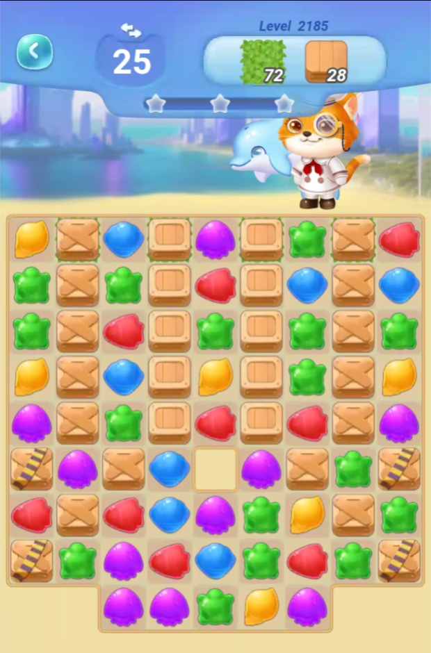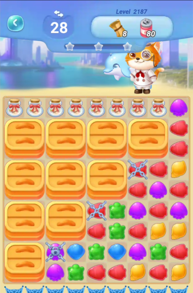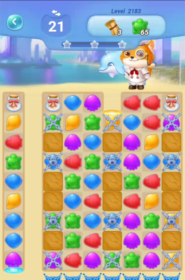倉庫(缶)を全部消すと瓶が落ちていくのですが、左上の倉庫を消すまでには苦労します