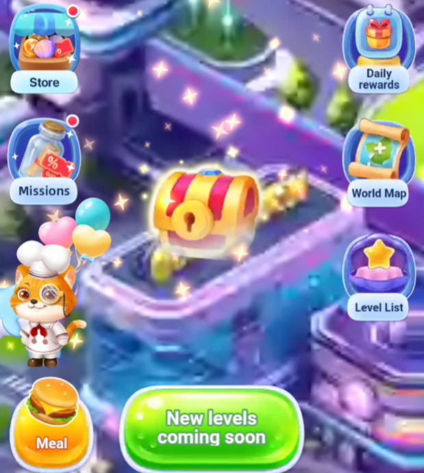 宝箱が表示されて、New levels coming soon に表示がかわりました