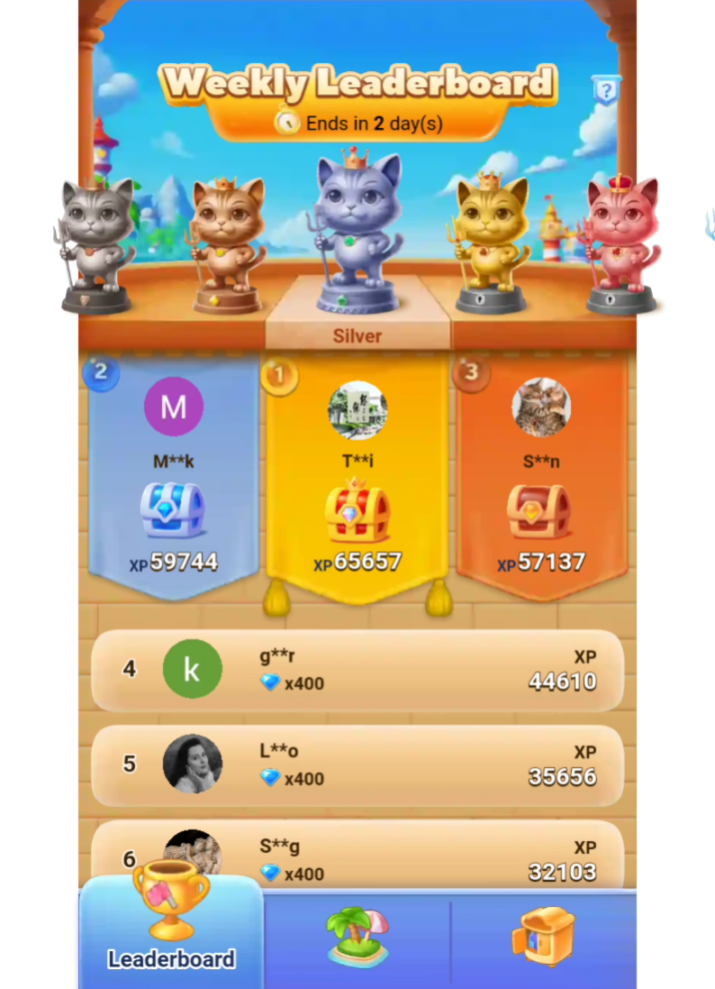 Weekly Leader board に XPの獲得数に応じた順位が表示されていて、上位(3位まで?)だと何かもらえそうです。