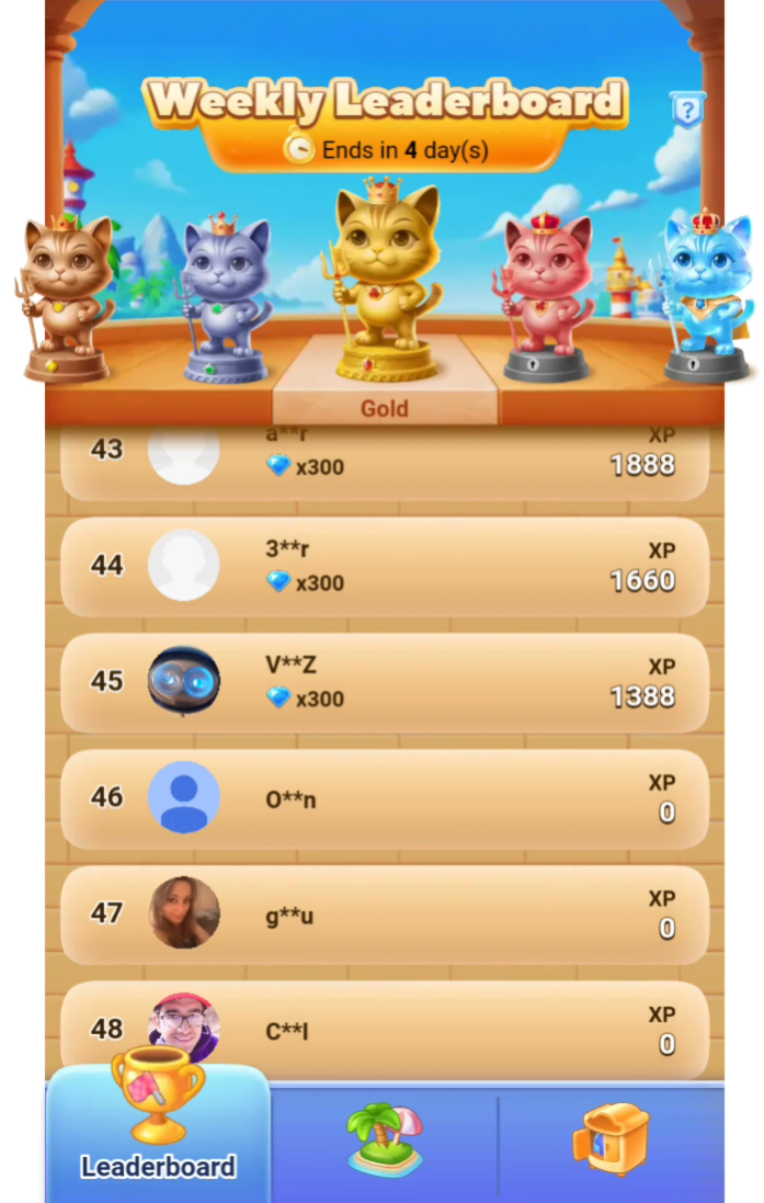 今週からは Gold ランクでの勝負になっていますが、参加者がまだ少ないのか46位以降はまだ今週の獲得XPが0のようです。
