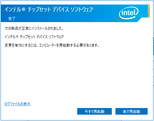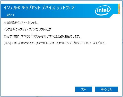 インテルチップセットデバイスソフトウェアのインストールがはじまりました