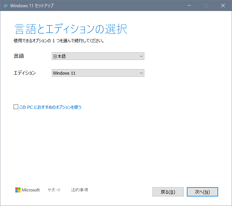 HDDにインストールされているのは Windows Pro なので、 同じバージョンを選んで