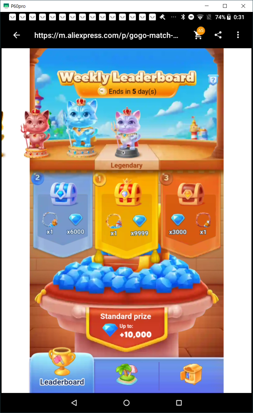 AliExpressアプリのゲーム GoGo Match で 1週間単位でのランキング争いがはじまって、4週目。