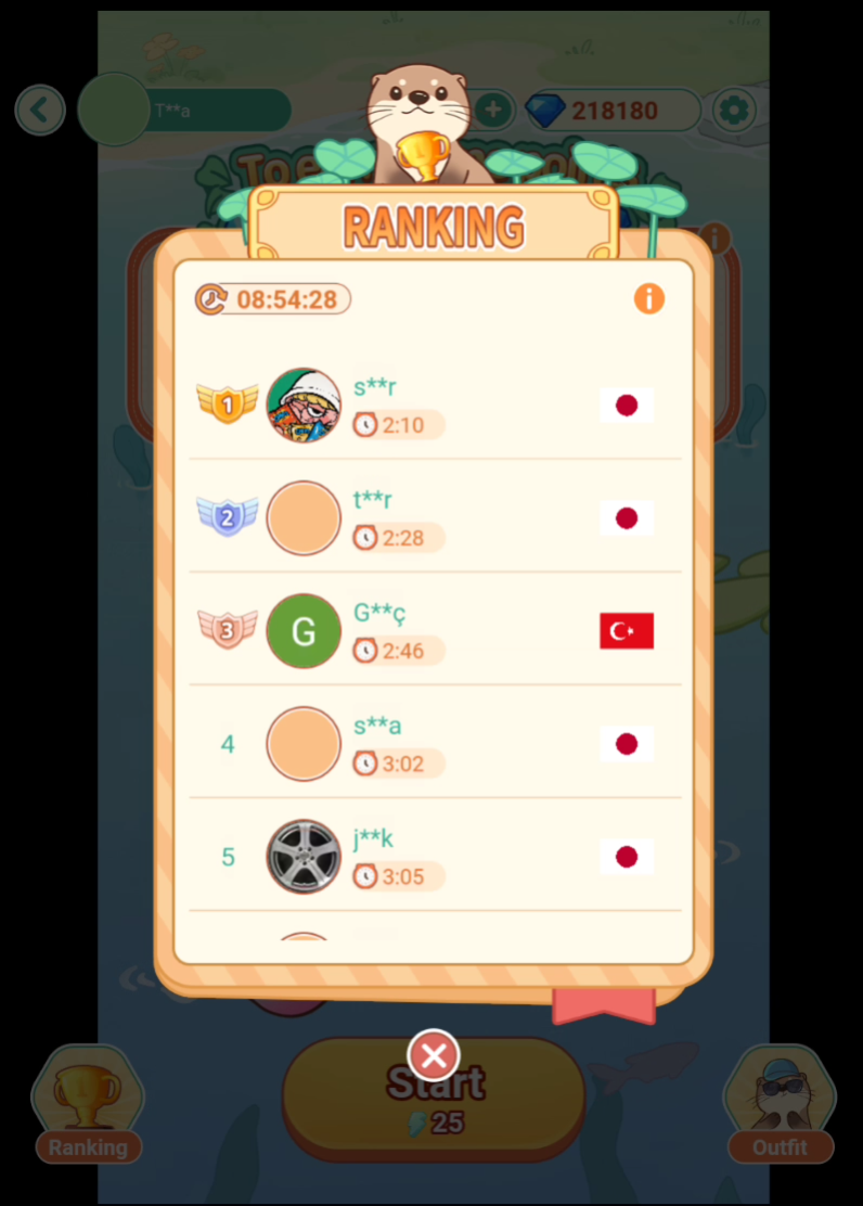 「Otter's Treasure」といい、ランキングがあると、上位争いが非常に激しくなるようです。