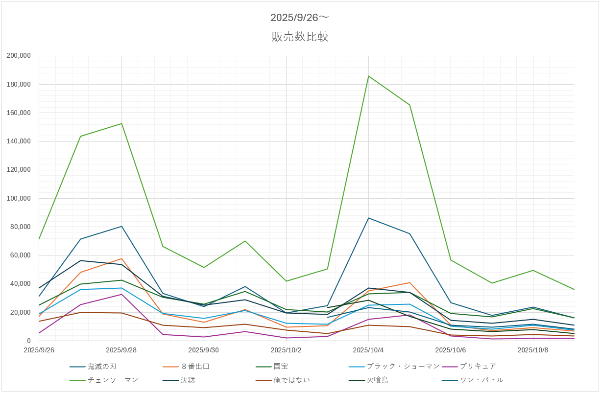 チェンソーマン、鬼滅の刃、沈黙の艦隊、8番出口、国宝、ブラックショーマン、火喰鳥、ワン・バトル