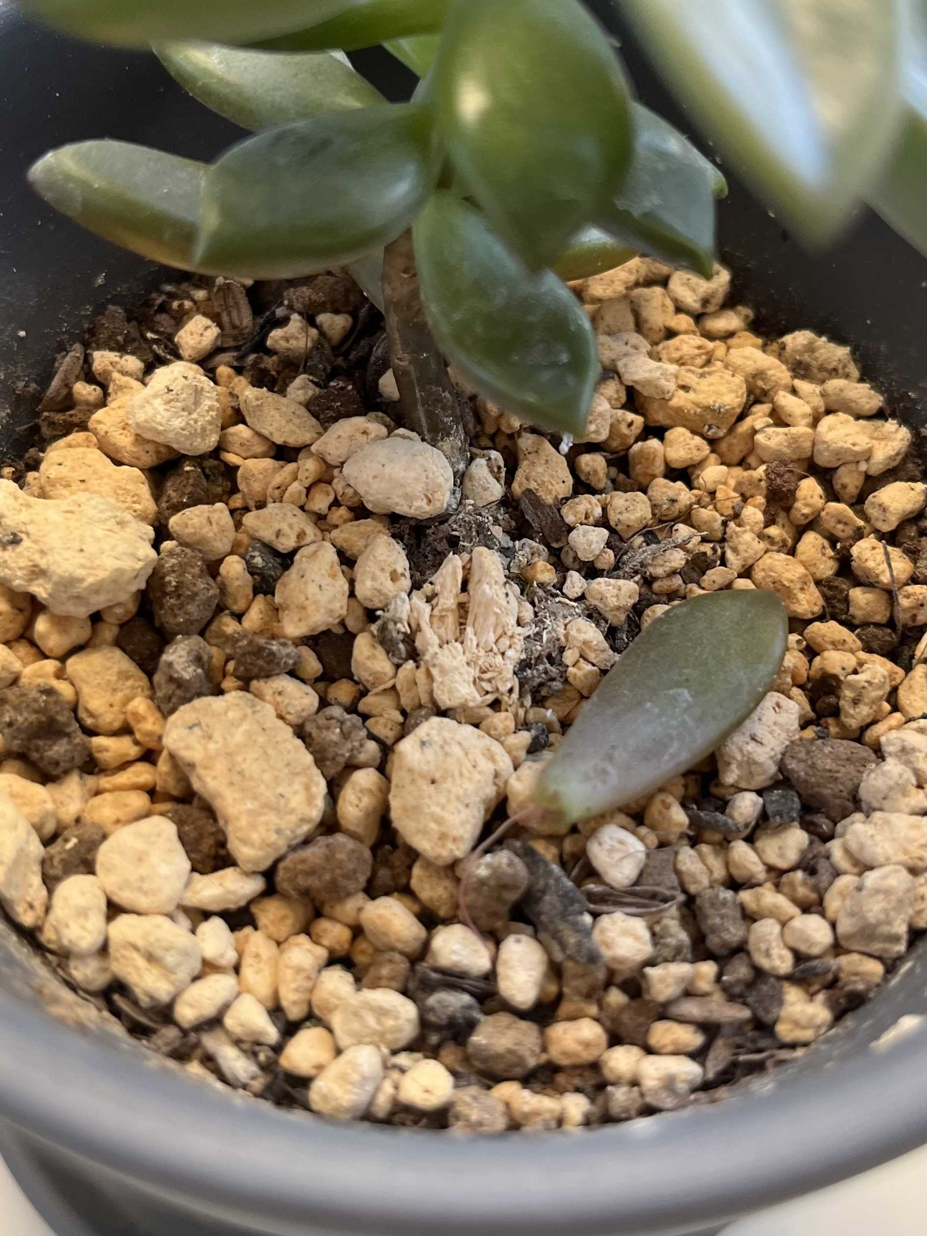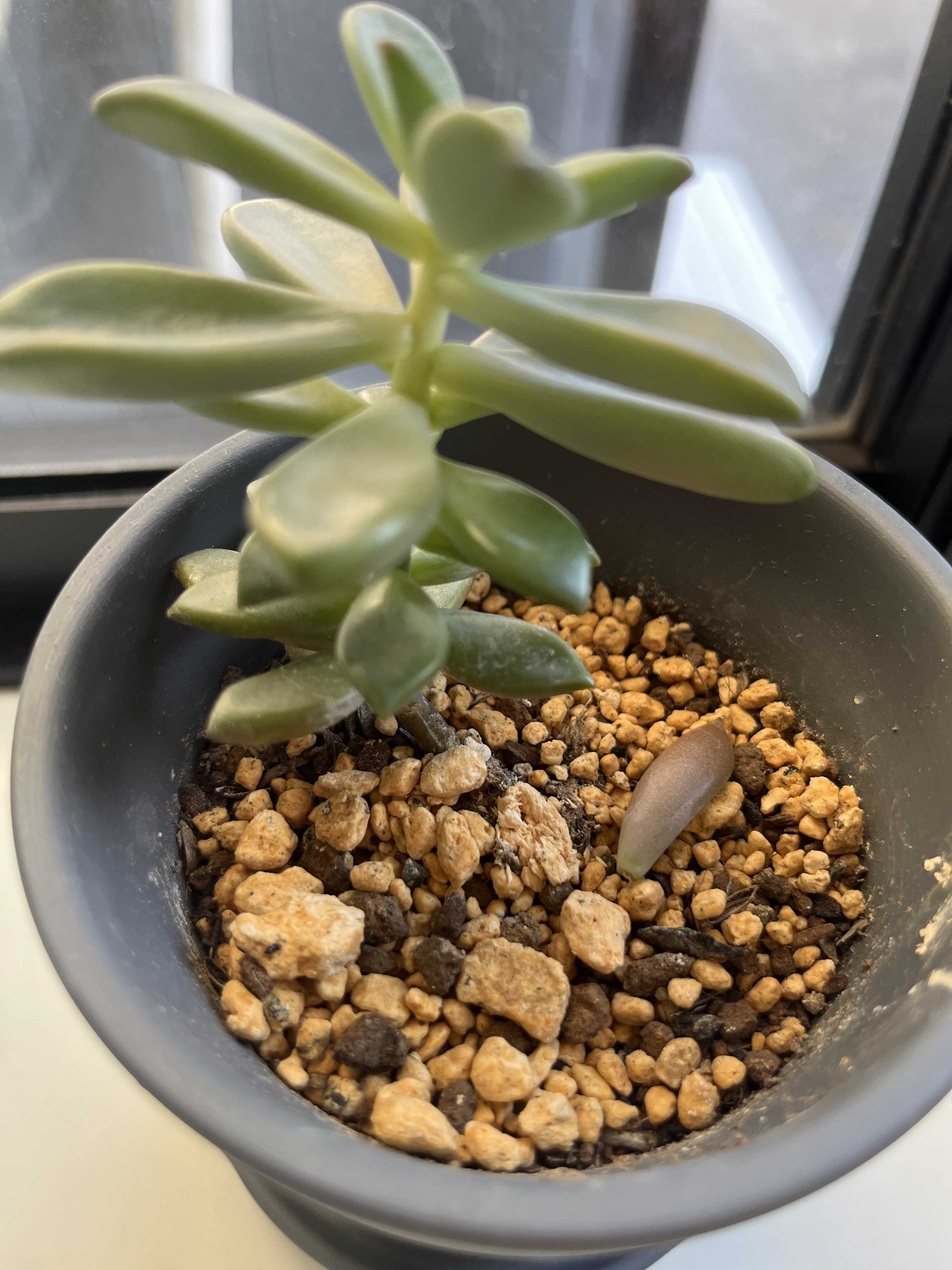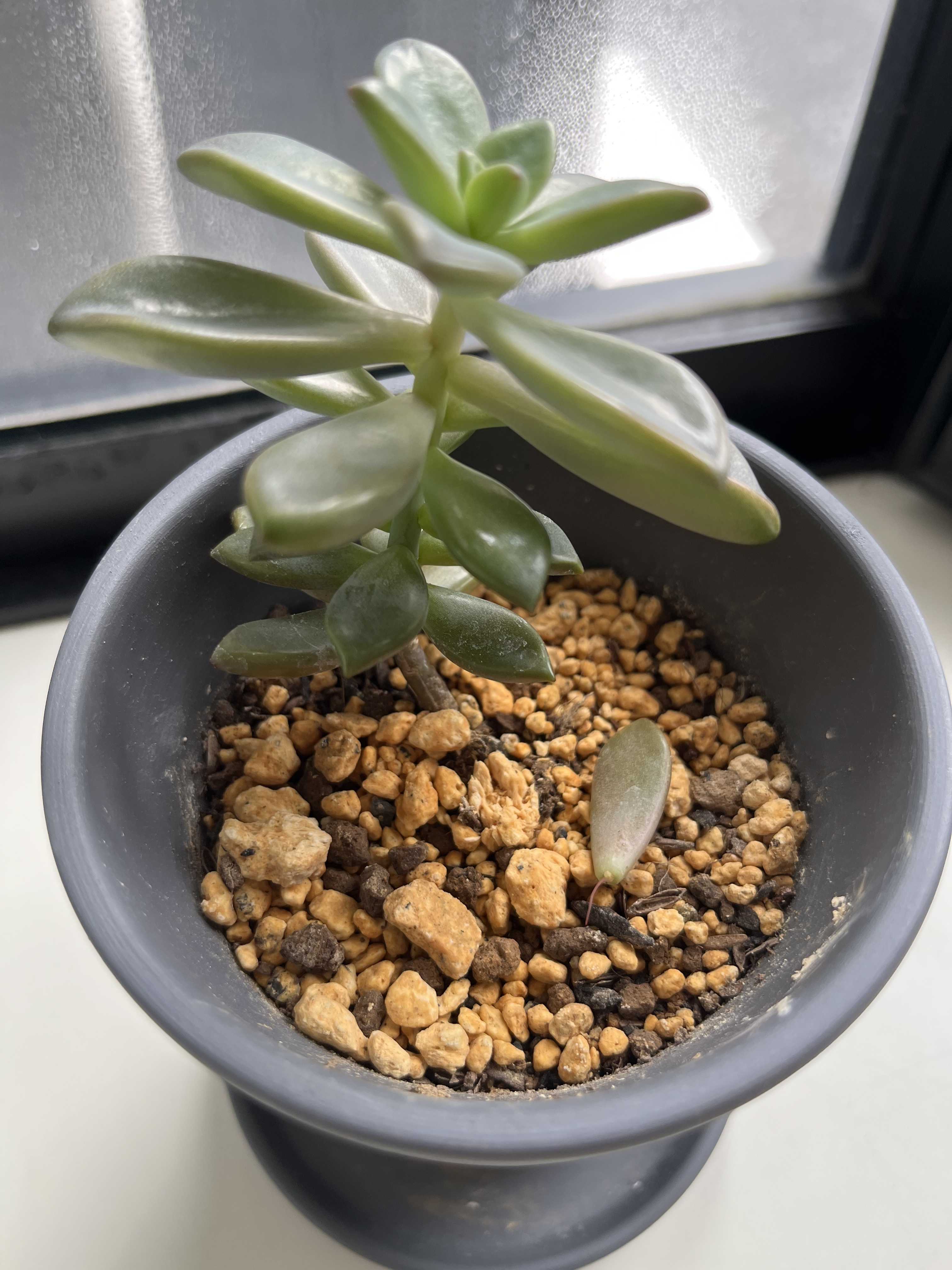 こんばんは!朝の冷え込みがだんだんと、辛くなってくる季節になりましたね🥶暖房を使い始めました。笑さて、今日は名前のわからない多肉ちゃんの成長をご覧下さい😌多肉ちゃんを増やそうと先日、葉っぱを切りました。それから1週間くらい過ぎましたが…ボヤけていてわかりづらいかもしれませんが、根っこらしきものが生えてきた?かもです。このままいけば根っこが生えて、多肉ちゃん増殖計画に一歩踏み出せそうです😊まだまだ生えてくるまで時間がかかるかもしれませんが、しばらく観察してみます☺️