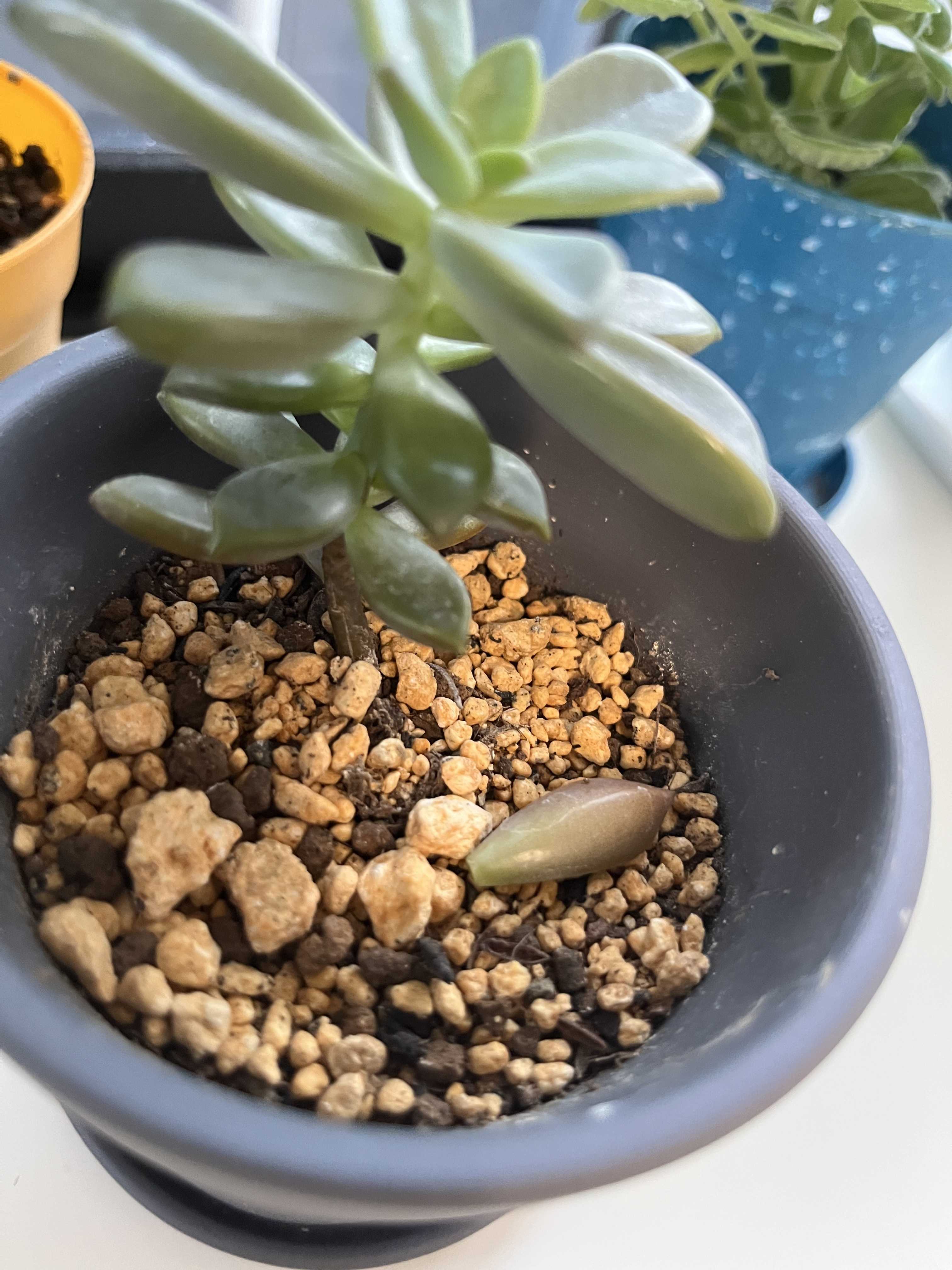 こんばんは!今日は多肉ちゃんの仲間を増やすために葉っぱを折りました。こんな感じでいいのかな?しばらくこのまま様子見ます。根っこが生えてくるのかな〜