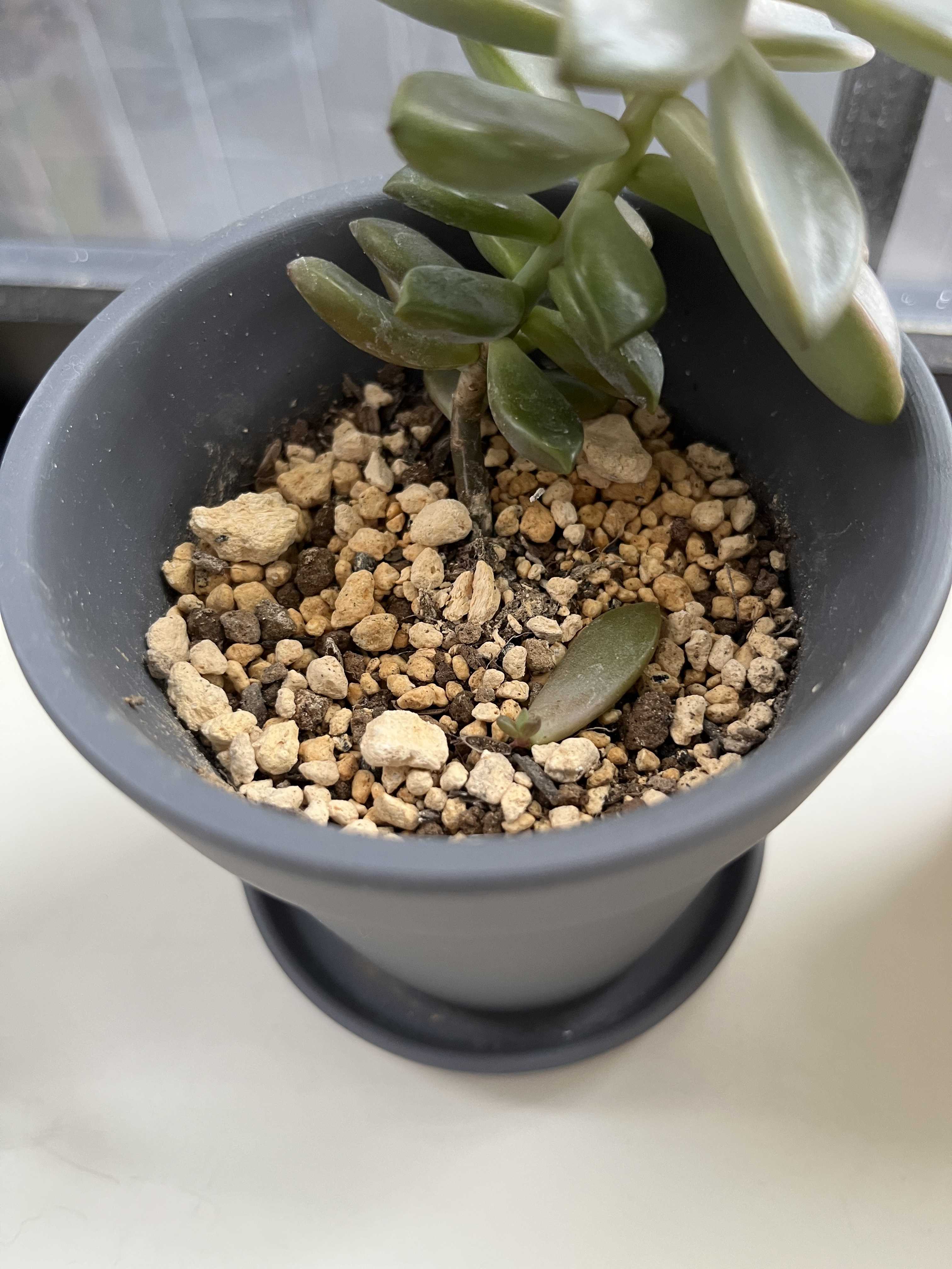 こんばんは、今日も一日お疲れ様です。今日は、名前がわからない多肉植物をご紹介します。これは、催し物でいただいた多肉植物ちゃんです。自分で植木鉢に植え替えをしました🍀葉っぱを土に置いておくと、根っこが出てくるとか…?こちらも増殖をさせてみたいと思います。あとは水やりですね、小さな虫が動いており、ショックでした。虫が湧いているところを取り除いて、新しい土を入れで、しばらく様子見ようと思います☺️