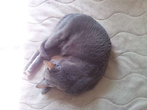 翌日からでんちゃんは発作もなく、少しはありましたがすぐに治まり、毎日穏やかな日が続きました。私はでんちゃんが長生きすることに対する執着心は20日に断ち切れ、ただ穏やかでいてくれればいい、と思っていましたが、その通りになってくれました。のどの通過障害があるのかな…?と考え21日朝食はカスタードクリームを少々、その後は缶詰(K/D缶)をお湯でのばし、すりつぶして出しました。でんちゃんは食事量は激減しましたが、すりつぶし食(ペースト食)をトラブルなく食べてくれました。獣医さんの診立てでは 甲状腺機能亢進症かも。。。ということでした。でも暴れるので詳しい検査はできず。もし確定診断できても19歳の高齢猫さんに全身麻酔で手術、って論外な気がして「かも…」でいいか、と思っていました。職場で看護師長さんに相談したら「のどに違和感があって、吐きたいけど吐けない、そのうちに嘔吐しようとしてのどの粘膜が傷ついて苦しくなるのかもしれないですね」と言われました。そう考えると納得できる気がしました。いずれにせよ、食事量の少なさを見ると、ずっと長生きはないな…と思えました。でも、長生きすることより苦しまないことが大事なので、そう悲観的にはなりませんでした。にほんブログ村