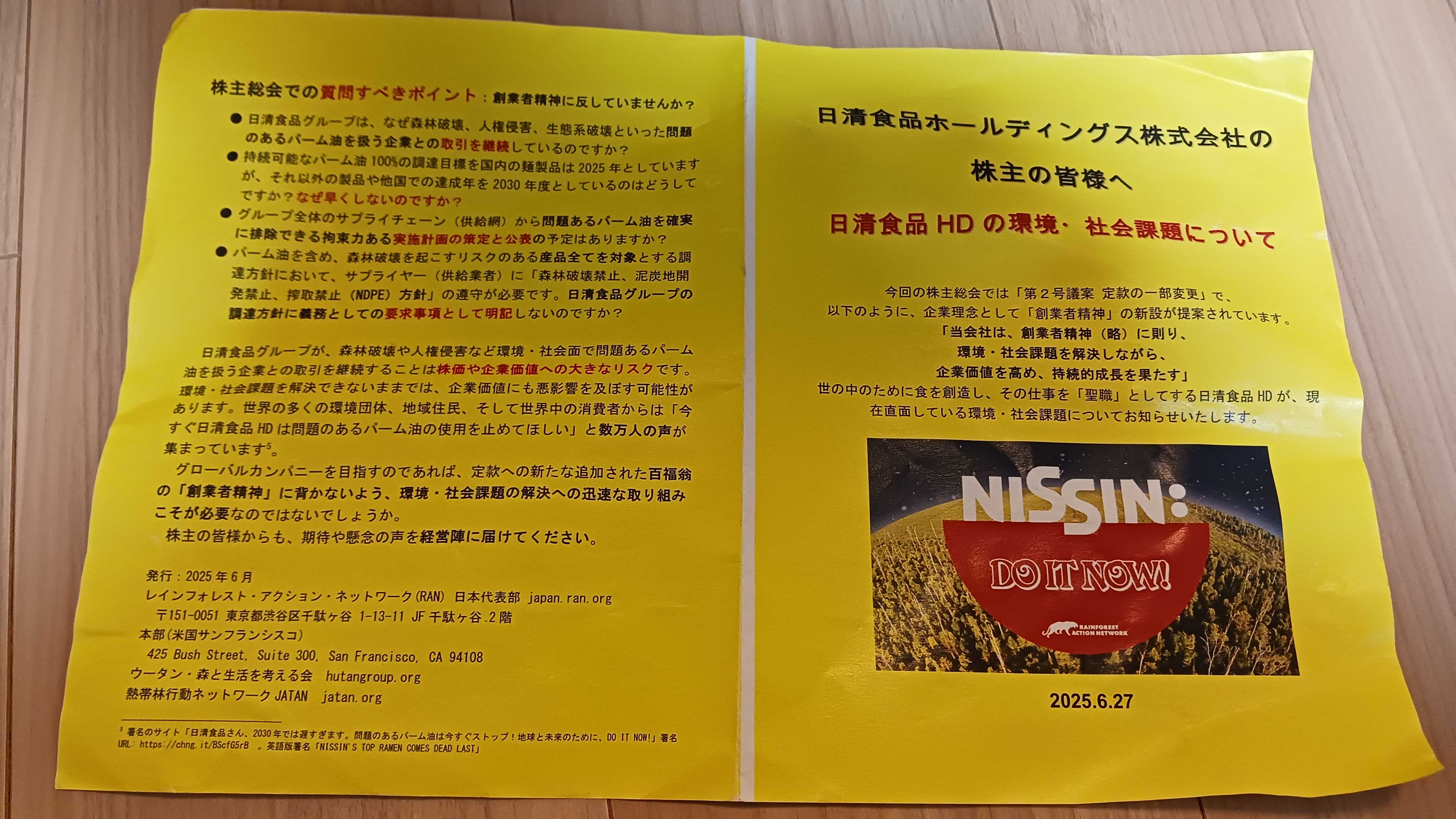 日清食品ホールディングスがパーム油で何か粗相があることをつかんでいないと長々と演説しても、あしらわれて終わりでは?