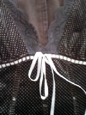 レベッカテイラーのワンピースを買いました!写真は全体図(畳の上なのでいまひとつ雰囲気が…)と、胸下のリボンのところ。深い焦げ茶色の地に淡い緑の水玉模様で、襟ぐりと肩、袖、すその部分にかわいい黒のレースが!お店でひとめぼれ、でございました。お姫さまみたいなワンピースに弱いわたくし。ああ、かわいい。このワンピースがクローゼットにあると思うだけでしあわせ。これ、秋冬の結婚式にも着られるよなあ。女の子に生まれてよかった!ベルベットのワンピースが欲しくて(もちろん、2月9日の革命舞踏会in九段会館に着てゆくのです!)、年が明けて値下がりするのをずっと待っていたのであります。おかげで、ほぼ半額で手に入れることができました。それから生活の木で、スイートアーモンドオイルとホホバオイルの大瓶を。すぐなくなっちゃうのでいちばん大きいやつにしました。色んなクリームやオイルの容器と、アロマバス用のバスソルト(巨大)も購入。セラピストか、わたしは?「おいしいハーブティー」シリーズのハーブティーが本当においしくて(毎日3回くらいのんでる)、今日はエキナセアオレンジとミントパーティーを入手。ミントティー、好きだなあ。アタマもカラダもすっきりきれいになる感じ。ペパーミントやエルダーフラワー、ヒソップのハーブティーを日ごろからのんでいると免疫力がついて花粉症の予防になるので、毎年苦しんでいらっしゃるみなさまもぜひ。