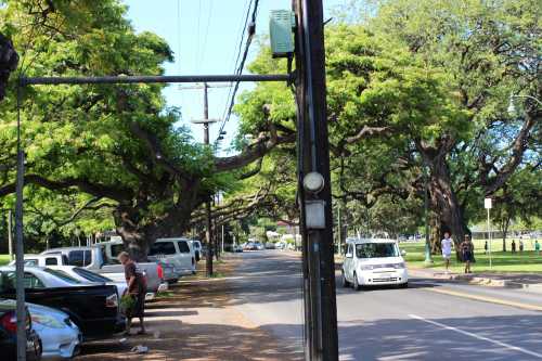 Monsarrat通り、モンスラーと言うより英語なんで、月曜のマンデーと同じでどちらかと言うと、マンスラーでしたね(^◇^)最近は、トロリーも走っているんですなぁ・・・。KCC人気が、相変わらずあるからかな?ダメヘ近すぎ(^O^) 登れそう?背中も、いいですなぁ・・・。お目当ての交差点?と思いきや、その1本手前、レアヒ通り。レアヒとは、ハワイ語でダイアモンドヘッドの別名でまぐろの頭の意味で、似ているからと。たしかに、ダメヘの麓の通りですからねぇ・・・。標識、よーく見るとレーアヒなんだね。(^O^)後ろから、失礼!木々が、やっぱいいですなぁ・・・。だいぶ、カピオラニ公園に近づいてきたかな?そして、大好きなパーキー・ストリートかな?標識が残念なことに、反対側にあってこの時は撮れなかったんですが最終日、ちゃんと反対側来た時、激写します。妻なんか標識と、ツーショットまでしちゃってますからねぇ・・・それは、またその時に。来ましたぁ~!!パーキー・ストリート!!そーなんです、パーキーって伸ばすんですよねぇ・・・。バスの放送聞くまでは、パキストリートだとばかり思っていました(^^ゞこの木々が、覆いかぶさっているのが最高ですなぁ・・・。年末、アクリル画でも描いて、トイレに貼ってます(^O^)さあ、次回やっとこ、カピオラニ公園へ。つづく。