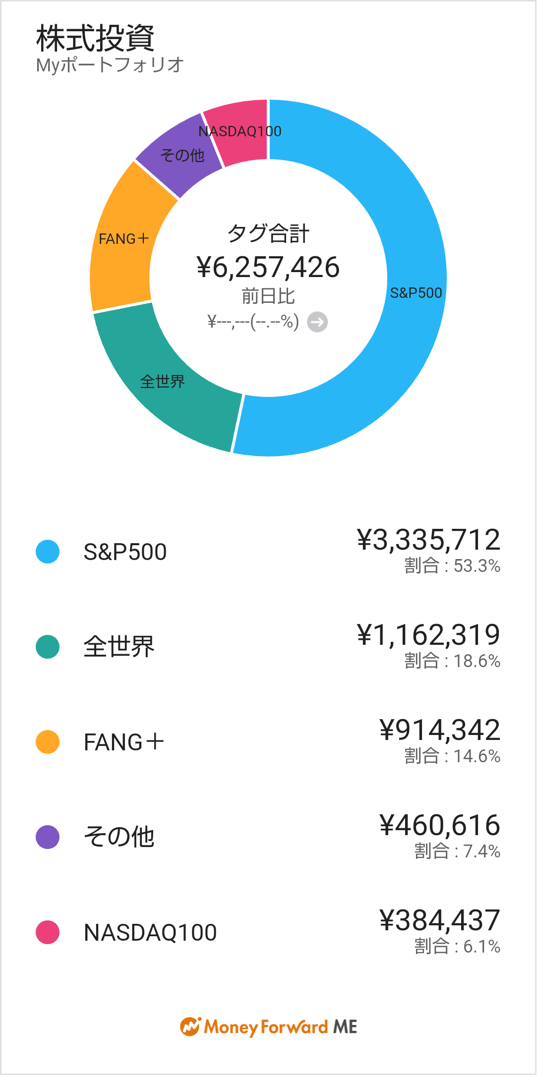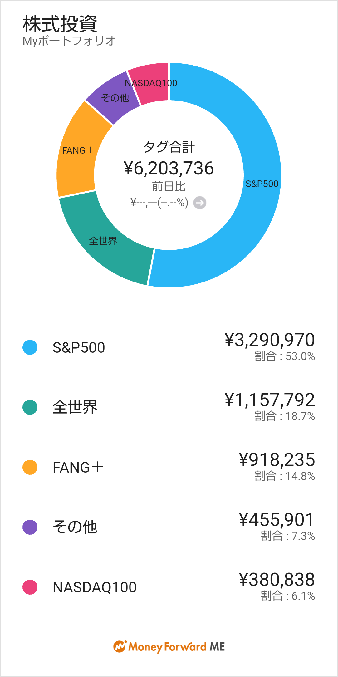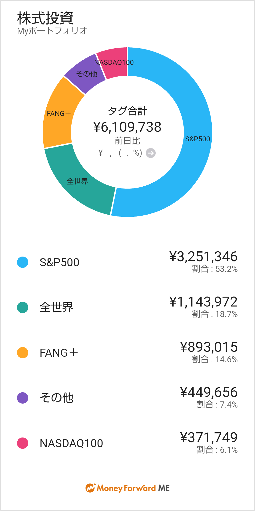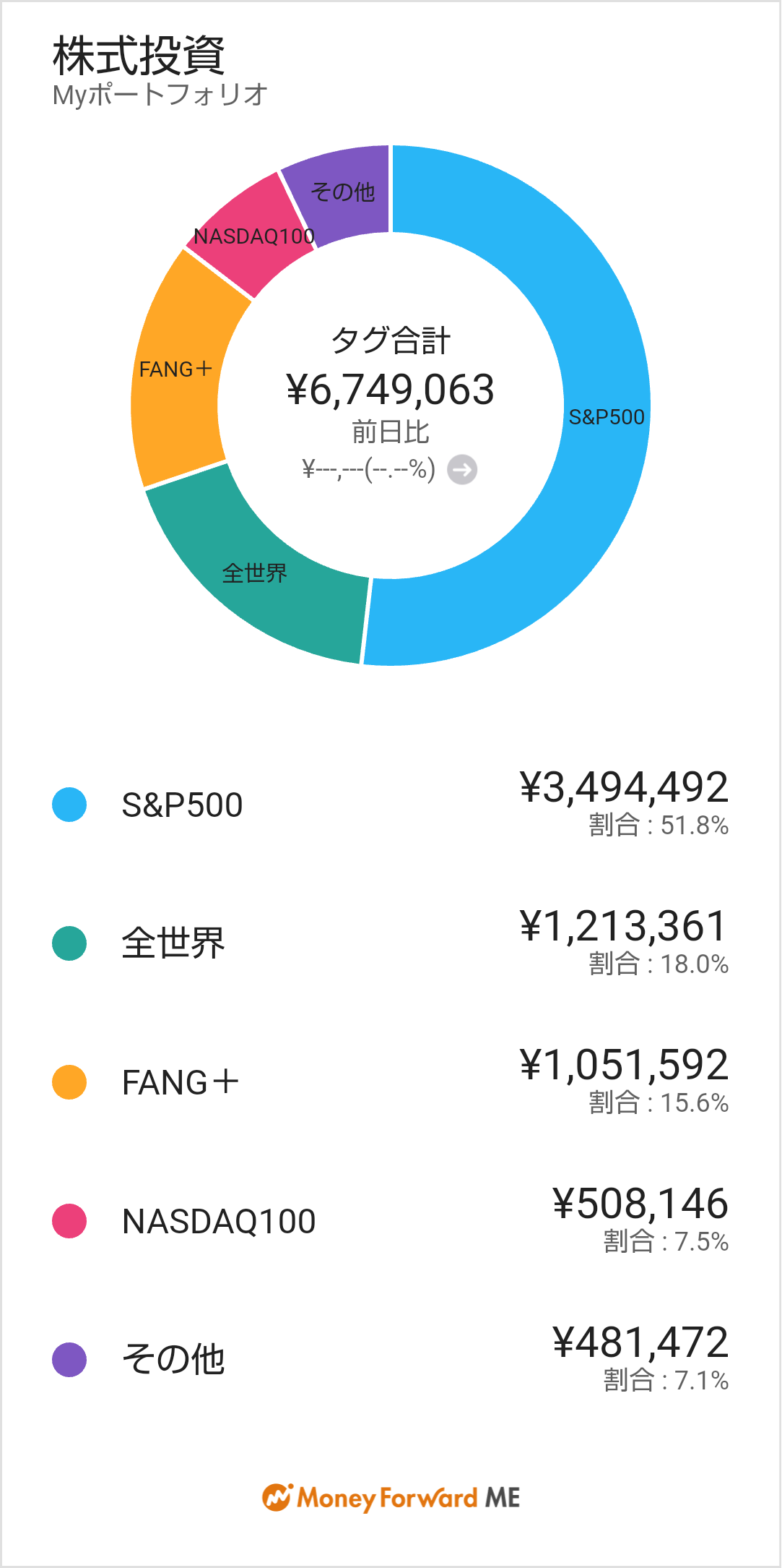 今週の資産推移はこちら↓10月18日 10月25日 【投資信託】 資産額:6,749,063円(評価損益:+2,107,853円、損益率:45.4%) 評価損益:+235,407円(前週比) S&P500 3,494,492円(+136,023円) 全世界株式 1,213,361円(+34,243円) FANG+ 1,051,592円(+35,913円) NASDAQ100 508,146円(+17,117円) その他 481,472円(+12,111円)先週は一気に下がったと思ったら、今週は回復しましたね。下がった時な基本的に株価を見ないので、いつ上がったのか不明ですが今年の目標額は達成できているので、このまま維持してほしいもんです。