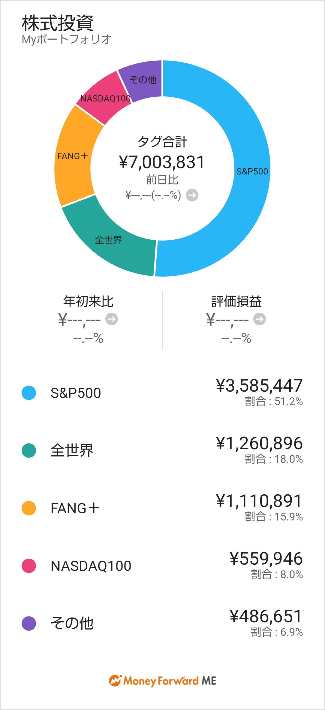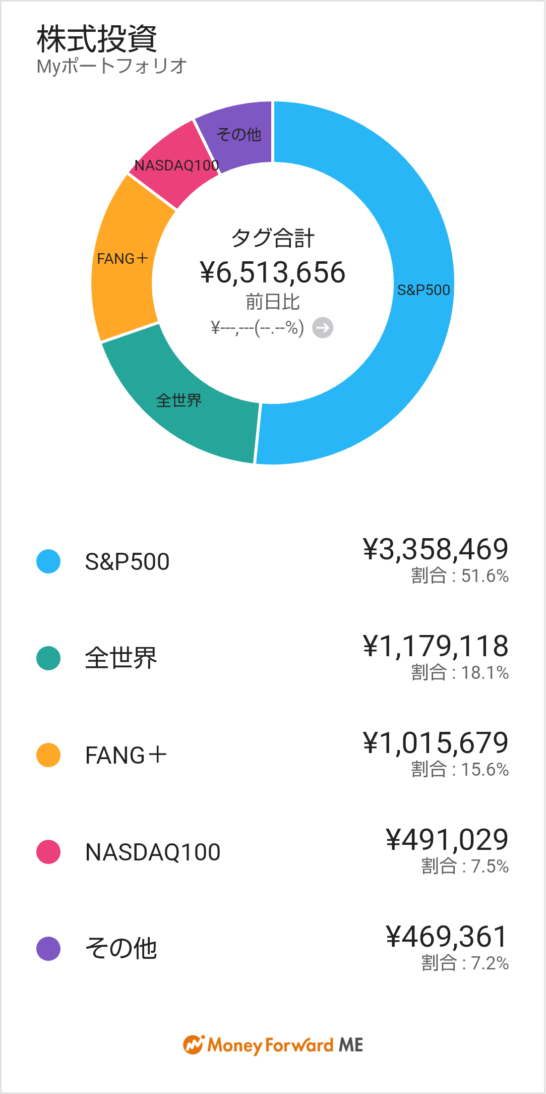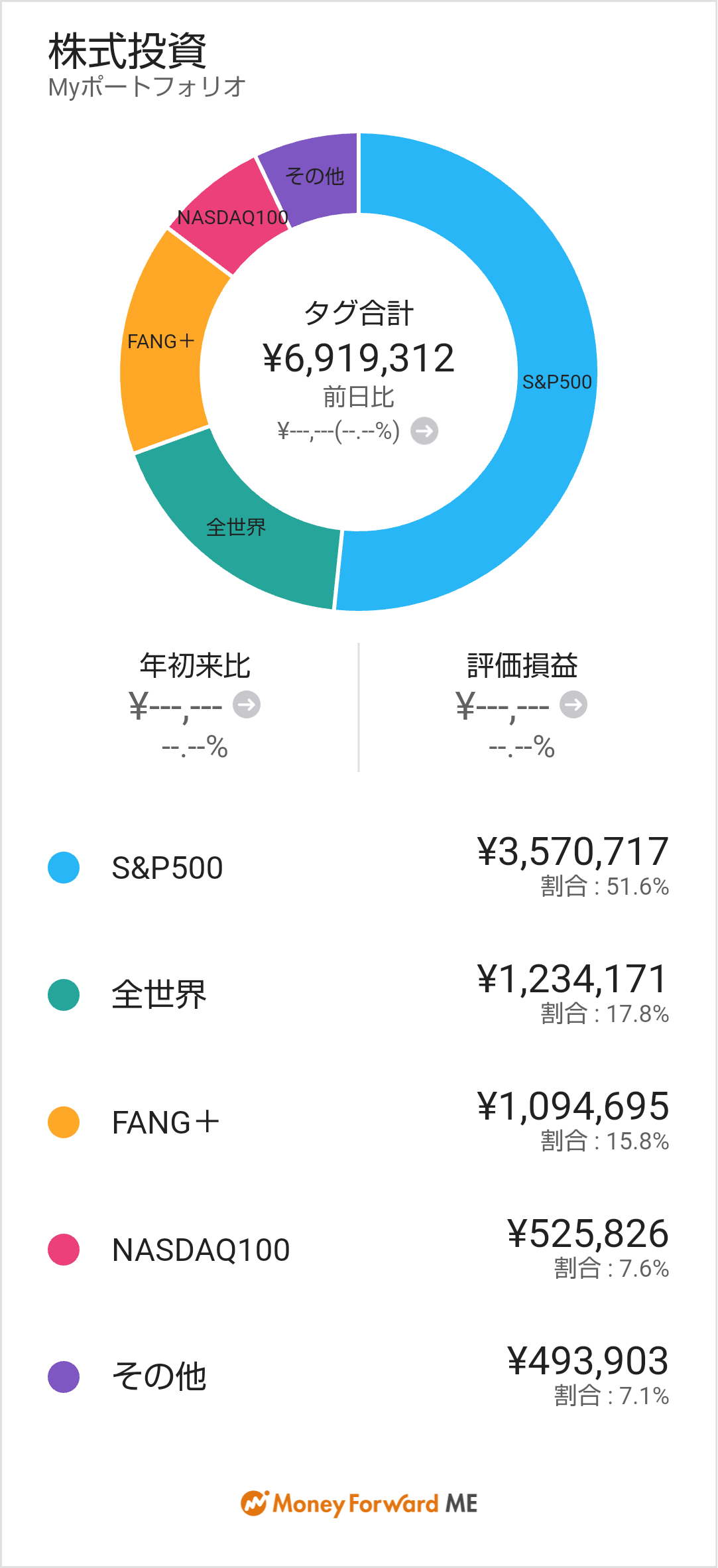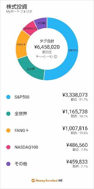 今週の資産推移はこちら↓10月18日 10月25日 【投資信託】 資産額:6,749,063円(評価損益:+2,107,853円、損益率:45.4%) 評価損益:+235,407円(前週比) S&P500 3,494,492円(+136,023円) 全世界株式 1,213,361円(+34,243円) FANG+ 1,051,592円(+35,913円) NASDAQ100 508,146円(+17,117円) その他 481,472円(+12,111円)先週は一気に下がったと思ったら、今週は回復しましたね。下がった時な基本的に株価を見ないので、いつ上がったのか不明ですが今年の目標額は達成できているので、このまま維持してほしいもんです。