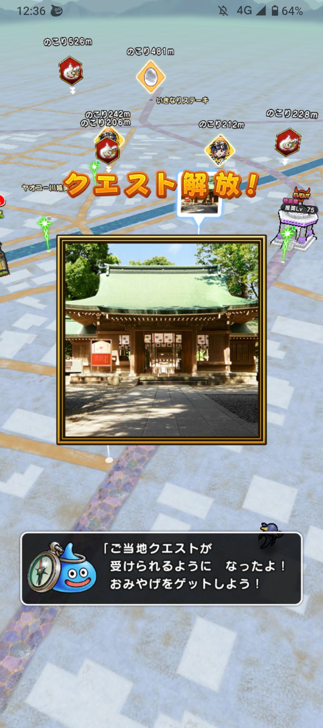 とうとうドラクエウォークのシーズン2が実装!各都道府県のご当地スポットが2つずつ、合計94か所も増えたようです。まだ攻略サイトにも全部は載っていませんが、楽しみが増えました。200名城も含めて、Googleマップに行きたいところを登録しているんですがこれから行きたい場所が500か所近くなっていました。ご当地スポットが増えたのは良いのですが、既に行ったことのある「川越氷川神社」が入っていたので、さっそく再訪。近場ですし。前回は川越駅から歩いて行きましたが、今回はバスでサクッと行きました。川越は前回と変わらず、相変わらず人が多い。お昼くらいだったのもあると思いますが、バスは満員。道は混雑で大変でした。 今のところ、氷川神社以外に被ったスポットは無さそうです。まぁ埼玉県の秩父と茨城県の土浦は、もう一回行く必要がありそうです。