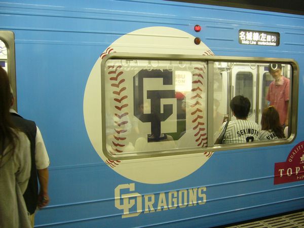 今日は、ナゴヤドームでの中日対阪神のデーゲームを見に行きました。名鉄・地下鉄を乗り継ぎ(上の写真は名古屋市地下鉄のドラゴンズ列車)、ナゴヤドームへやって参りました。 これがナゴヤドームだがね!!!試合は、最近の中日の試合展開そのままの打線がつながらない状況。和田が二塁打を打つものの、得点につながらない。 ノリがんばり、同点の二塁打。 最近人気のドアラもいるでよっ!いいところで李が打てないまま、9回まで2対2で延長戦に入った。我が家も帰宅のタイミングを考え、10回まで見て延長になっても帰宅することに。10回裏も2アウトで李の打席。ピッチャーは、藤川。完全に振り遅れ2ストライクまで追い込まれ、我々も帰り支度をした直後、レフトスタンドへサヨナラホームラン。何とか勝ちました。子供たちも喜んでいました。やはり生で見ると面白いな、スポーツって!