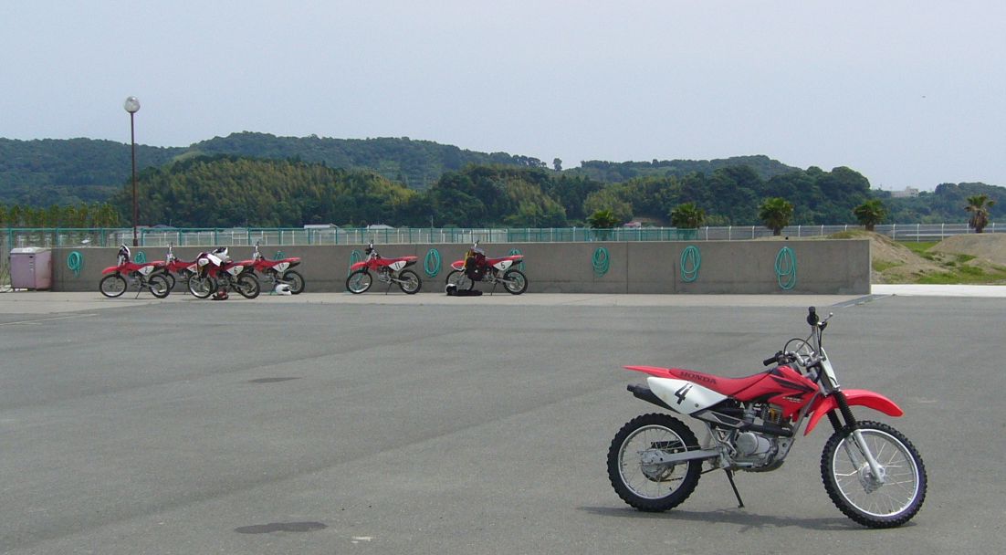 昨日、レインボー浜名湖でオフロード1日コースを初受講しました。参加者は5名、イントラさんはO島さんです。バイクはXR100。乗ってみると低速もあり、2速発進も簡単。狭いコースでも3速まで使えます。初参加者が5名中4名ということも有って、まずは草の生えたエリアでブレーキとコーナーリングの基本姿勢を練習します。くるぶしでグリップして、コーナーは基本リーンアウト。内足を前に出して、倒れそうになったら足を着く、という感じ。いかんせん草の上は滑る。直線で加速してガツンとフロントブレーキを掛けたら、あっさりフロントからコケました。リアブレーキでのロック練習でも、ガッツリ掛けてロックしたら膝で倒しこむ。するとリアが流れるのですが、そのままグルリと回って転倒。結局、午前中で3回コケました。お昼休みの写真。今日はバランスコースも、ドライビングコースもあり、最高の練習日よりでした。午後からはフラットダートで8の字から。旋回後半は、アクセルでリアを流すように走るのだが、特に右ができない。リアブレーキのタイミングが遅く、焦ってフロントブレーキを強く掛けると、前から転倒しました。その後小山の上り下り、ウォッシュボーボを練習して、バンクを練習。最後に全部をつないだコーススラローム?です。オンの練習でブレーキング時の体重移動は前後に出来るのですが、リーンアウトへの移動がうまく出来ず中途半端なままでしたが、それなりに面白かった。テーブルトップを低くジャンプするのを最後に練習しながら、何週か回って終了でした。メーター類は無いので走行距離は不明です。多分6回くらい転倒したのですが、筋がだいぶ伸びた感じで違和感アリアリです。今日は徐々に筋肉痛が広がっています。(年寄りなので反応が遅い)明日起きれるといいのですが。来週末は中上級(もちろんオンロード)に参加です。この週末の練習が役立つときが来るのでしょうか?