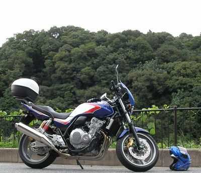 午前中は、息子の野球チームの応援で名古屋市南区まで行ってきました。その甲斐あってか、13対4で3回コールドの快勝でした。息子も3打数1安打(バントヒットという渋い2番バッター)で勝利に貢献しました。夕方からは息子の11歳の誕生日前だし食事会ということで、昼間2時間ほど時間が出来たので、香嵐渓まで153号線を走って慣らしの距離を増やしてきました。往復で約50kmです。 途中153号線沿いの矢作川(と思う)沿いのパーキングで1枚写真を撮りました。ここは見上げると東海環状道路(だったっけ?)の赤い橋が架かっています。 こんな感じ結構立ち代り車が止まって、写真を撮っていきます。HONDABIKESという雑誌の24号に、スクーデリア・オクムラさんの紹介記事でもバックに写っています。赤いのでちょっと目立つというくらいのものですが。走行距離は、まだ350kmくらい。最低500kmくらいは、慣らしをしたい。明日も50kmくらい走りたい。次回の出張前には、一度全開をしたいなぁ。