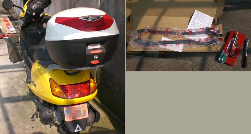 今日はいい天気で、朝から足りない工具などを準備して、午後からハードケース取り付け開始。元々はSPACY100で使用しているものを転用しました。取り付けるものと工具も準備。以前ブレーキ関係作業用に準備したトルクレンチも活躍。アシストグリップとリアサスの取り付けボルト部を使用してステイを取り付け。作業そのものは30分もあれば終了です。ボルトの締め付けをトルクレンチで締めます。(このために5mmと6mmのヘキサソケットを買いました)最後にベースを付けるのだけど、左右のステイ間の取り付け穴ピッチが狭く、ベースが変形して上面の蓋が嵌め込んでも浮いてしまう。一度アシストグリップ部を緩めて、広げながら閉めなおすが効果は少なく浮いたまま。でも、ケース取り付けには支障ないので、そのまま進める事に。で、取り付け状態がこちらです。思ったよりケースが高い位置にあるので、ちょっとビビる。この後、試乗もしたが体重も重くケースもあるのでリアのプリロードを1つ強くするかどうか悩みどころです。でもこれで、バイクでちょっと出掛けて買い物も出来そうで、バイクでの出掛ける機会が増えそうです。明日か明後日には少し遠出をするつもりです。